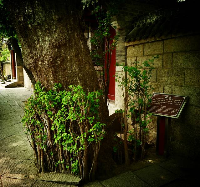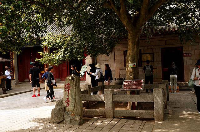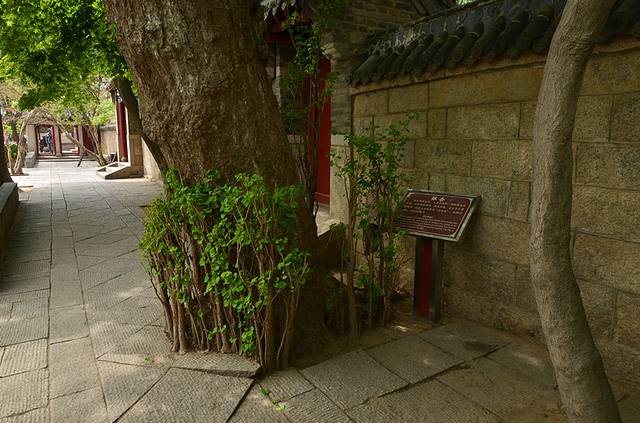 这堵墙就“藏在”太清宫的关岳祠内,在关岳祠中有一书亭,传说是蒲松龄创作《劳山道士》的地方,而亭子对面那面墙,据传说便是崂山道士穿墙而过的地方。