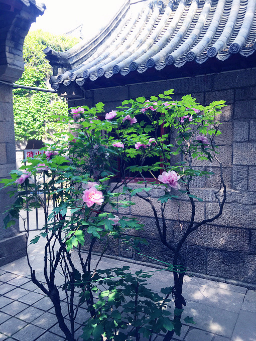 东厢房,据说就是蒲松龄居住并写出《崂山道士》和《香玉》的地方。厢房前那株牡丹铁杆虬枝,据说一天晚上蒲松龄正在三官殿东厢房看书,忽然觉得一股香味扑鼻而来,朦胧中,发现窗外一女子的身影一闪而过,起身推门一看,没见着人影,只有满院香气袭人。这一夜睡梦中,只见上清宫的牡丹仙子和院子里的耐冬仙子来访,求他为她们立传,于是这株山茶便成了流传至今的花神“绛雪”。