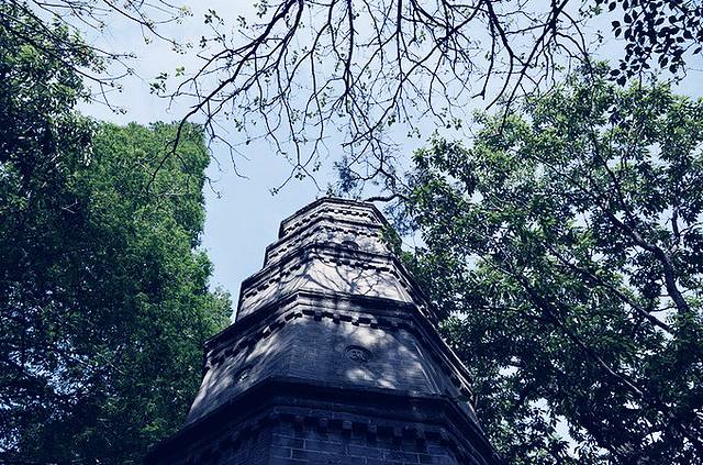 院中的一座七级砖塔埋葬着第一代住持慈沾大师,有两珠苍松紧绕塔身,虬曲多姿,名“松抱塔”,60年代松树枯死。