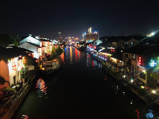 夜晚的清明桥灯火璀璨,热闹非凡。沿岸的桨声、灯影、古桥、民居构成了一幅天然的古运河"民俗风情 水上 画廓"。唯一不能跟运河美景匹配的就是沿岸的饮食文化,评分高的几家餐厅由于假期过于火爆七点半就停号了,只好选了一家还算可以的餐厅,遗憾的是除了螺丝还不错其他几道菜都味道平平。
