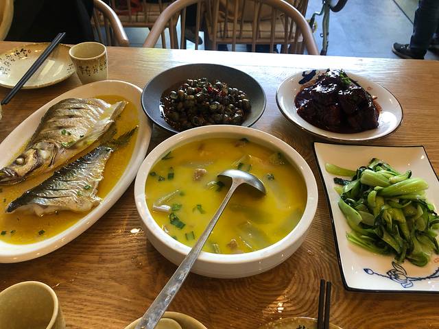 无锡休整半日十一点半才出发去拈花湾,一路顺利刚好到景区吃午饭,关于美食基本还是太湖三白、无锡排骨、螺丝、鸡毛菜等,没有值得一提的,还尝了一下腌笃鲜说实话真不怎么样,真不明白为什么会成为江浙沪的代表菜,可能是因为南北差异吧。