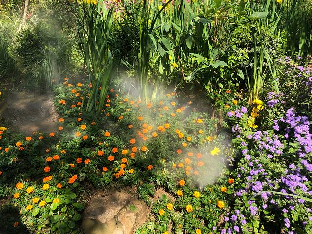 “佛土生五色茎,一花一世界,一叶一如来”。客栈门前花团锦簇,阳光恰好经过,留下花影斑斓。