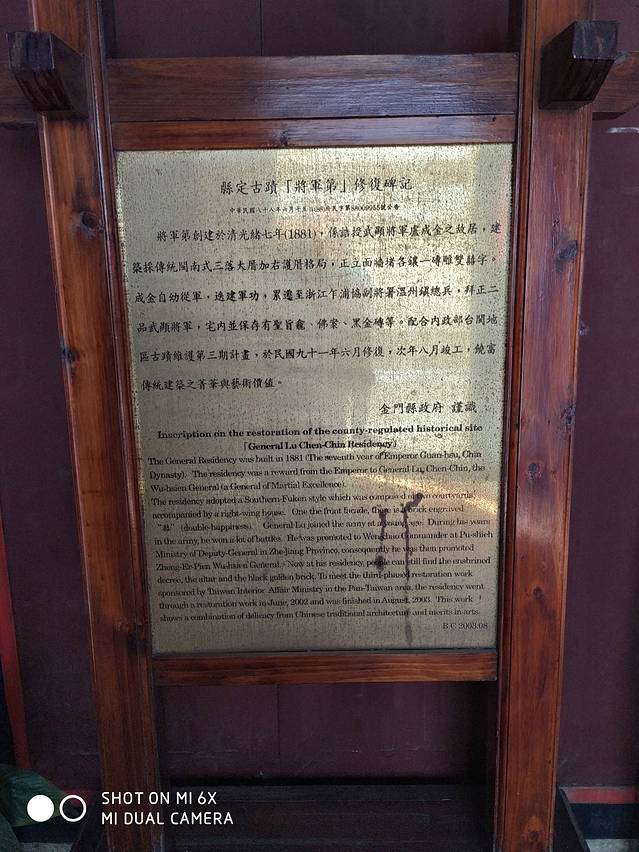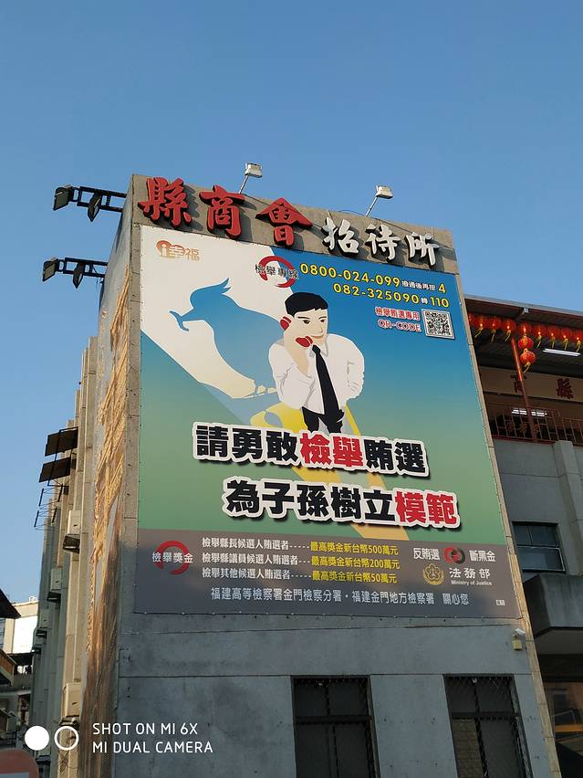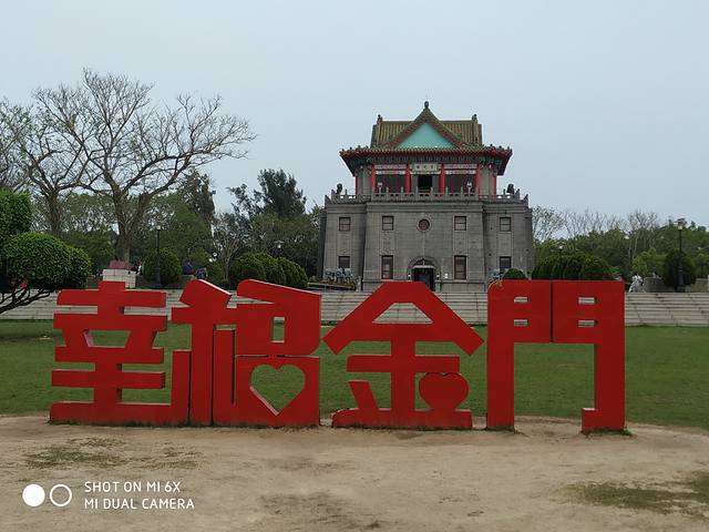 下午,我打车到了从宾馆到莒光楼,打表,110元台币。莒光楼是 金门 的标志,也是 金门 的至高点,建造于战争年代的民国41年(1952年),该建筑由花岗岩建造,模仿 北京 角楼模式,城楼的模式也表示遥望大陆中华故土之心。现在莒光楼前的广场上有“幸福 金门 ”四个大字。