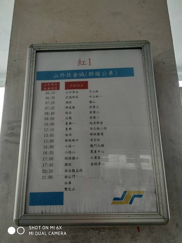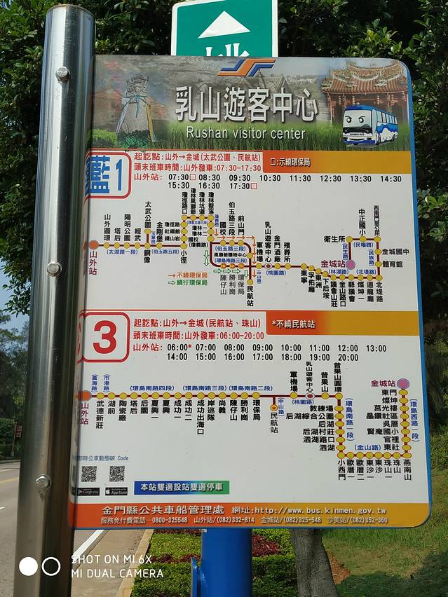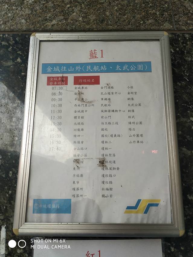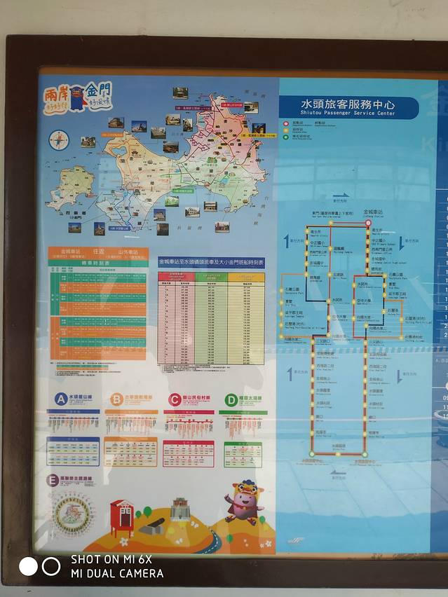 从这里可以坐车到金门任何地方,1 2 3号线都是到另一个枢纽站,山外车站。路线不同,终点相同,红1线最快,蓝1、3号线最慢。