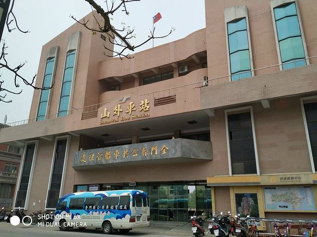 车站位于山外与新市里的交界,是一栋四层楼的建筑,它同样也是「 金门 县公共车船管理处」之所在, 台湾 好行观光公交车的C、D及E线则以山外车站为发车点,山外车站的马路正对面即为出租车的排班区,对于需要转乘的旅客来说相当方便。