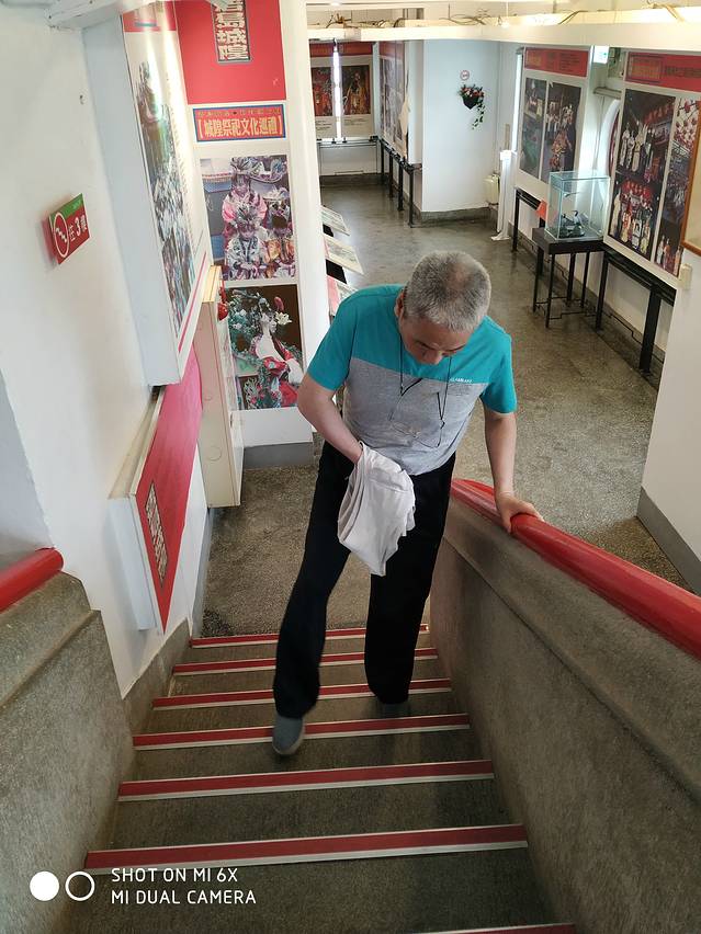 现在,开始从西边的楼梯往二楼爬,但是,他们的楼梯比较低,每一个阶梯最多15公分,比较好爬!