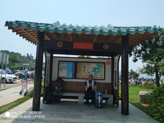 金门的公交车站就是这样,古香古色,有浓厚的闽南特色。我们在水头旅游中心乘坐公交站7,7A,7B都可以到金城车站,等公共汽车!7路,应该是12:45分左右到。