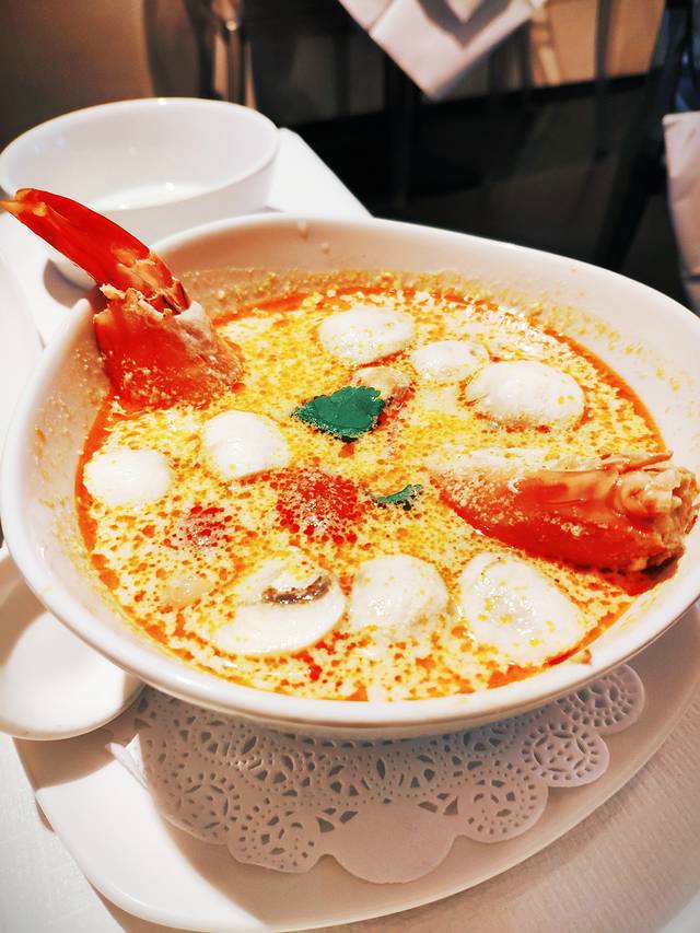 「冬阴功汤」是推荐菜,很小一份但味道不错~里面有一只很大的虾,还有好多蘑菇~不太辣,偏酸~