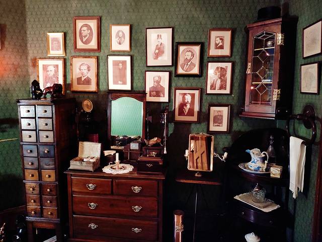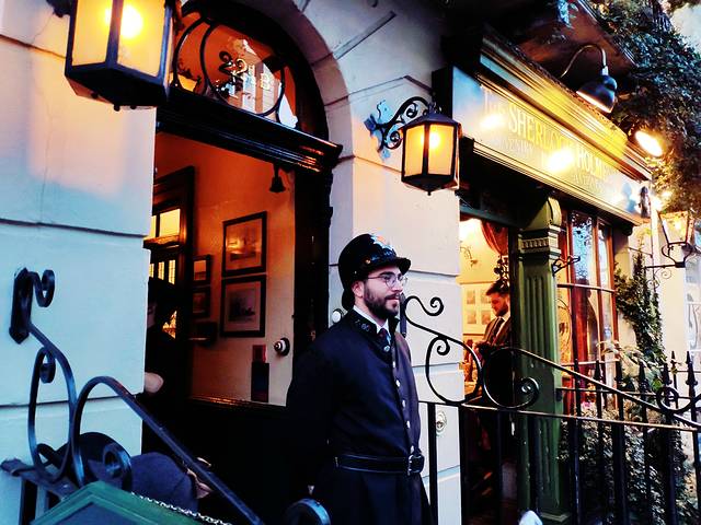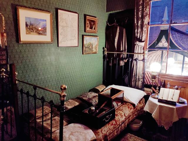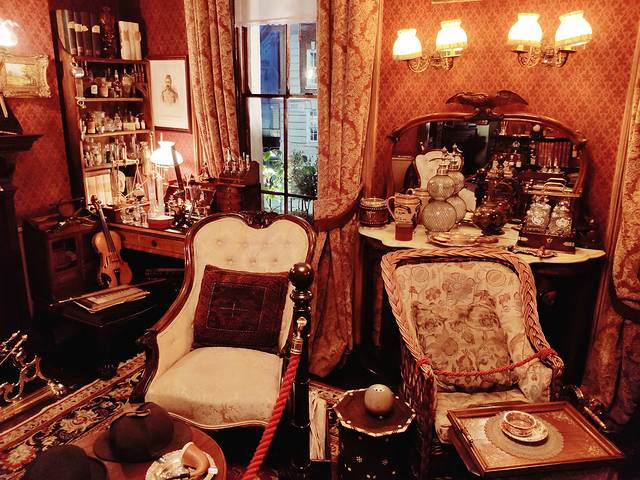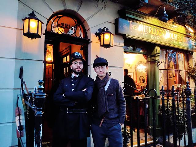即使之前已经从视频里看到过博物馆的全貌,也知道这个博物馆又小又挤又排队,作为福尔摩斯迷的施同学,不去亲自参观下,怎么对得起这趟巡礼之行?馆内的布置摆设都以小说中提及的情节为依据,更增添了福尔摩斯旧居的真实性。由于空间有限,博物馆的参观是限制人数的,分批进入,所以经常排队排好久~临近关门,紧赶慢赶地来到这里,还好排队人不多,总算赶上了参观~