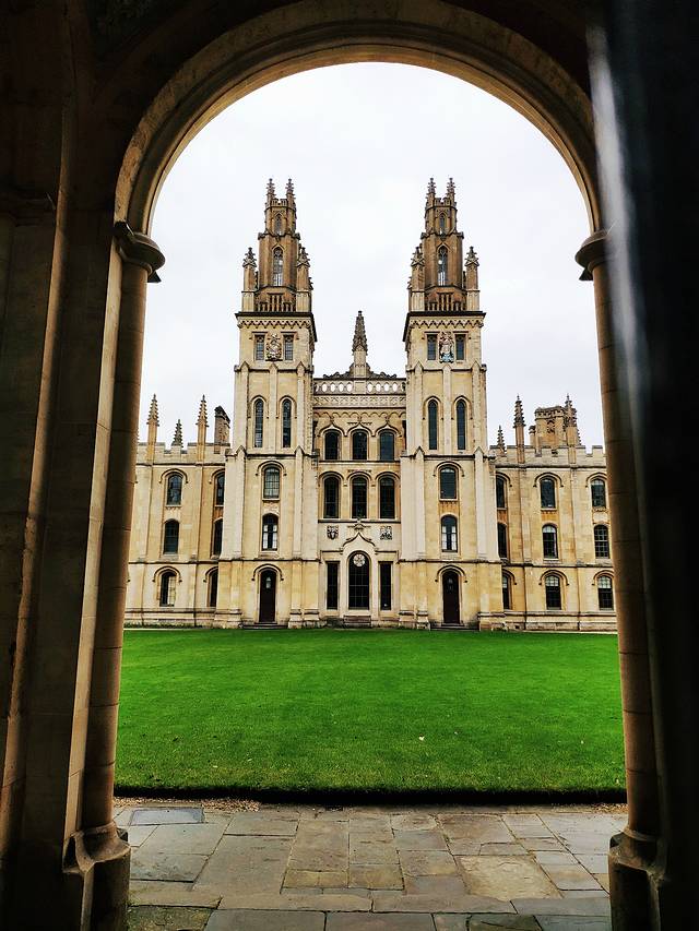 并没有在牛津和剑桥中有过多的犹豫,因为二者选任何一个都好。牛津是英国最古老的学术圣殿,大学没有围墙和校门之界,使得整个牛津市都弥漫着浓浓的学术气息,分不清是在校内还是校外。怪不得人家说,牛津是“大学中有城市”,剑桥是“城市中有大学”。