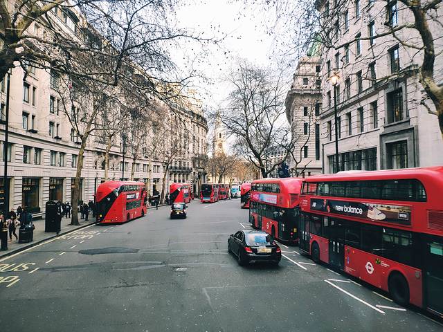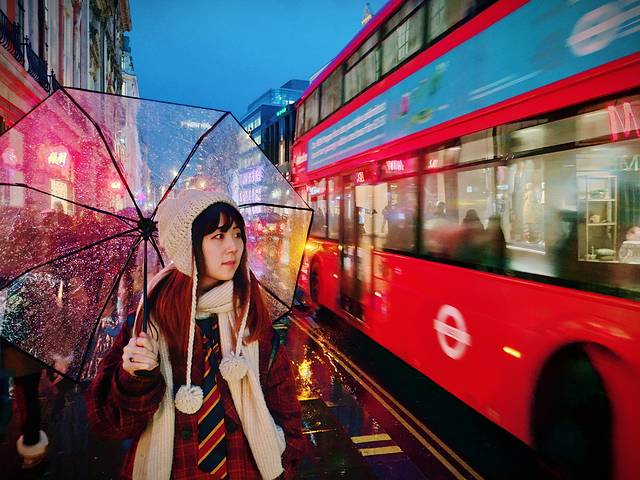 ▼是撑着伞走在牛津街,抵挡着冰冷刺骨的风,却沉醉在巴士温暖的红