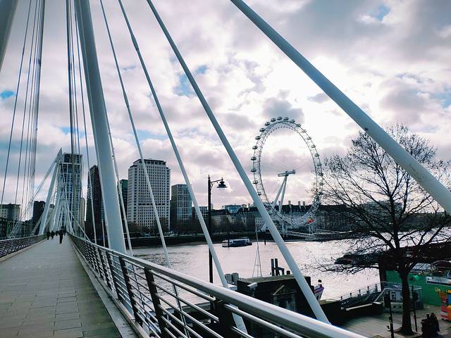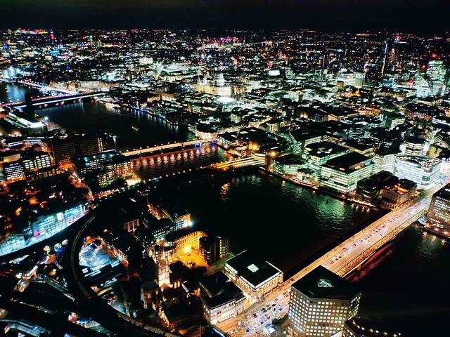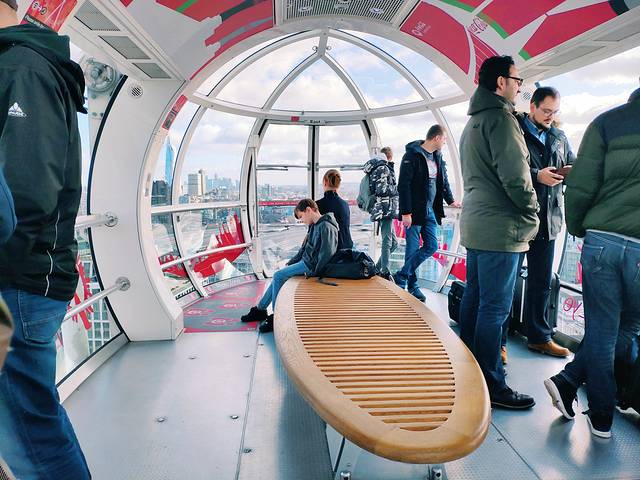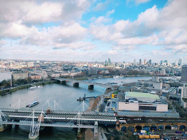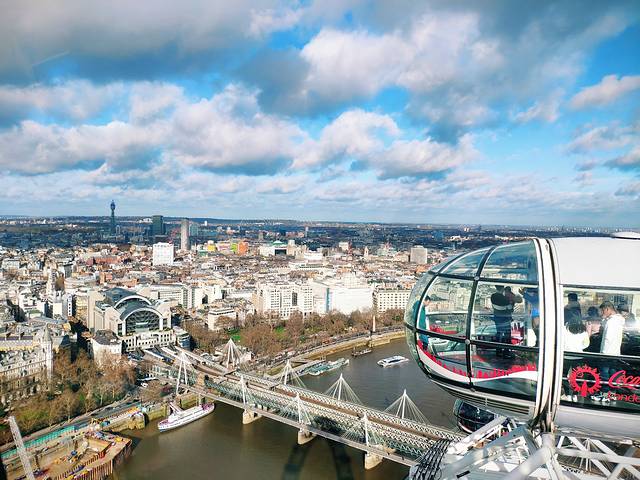 舱体像一个橄榄球的形状,能容纳好多人,自带科技感。登上泰晤士河畔的巨型摩天轮俯瞰,美好得像做梦一样……