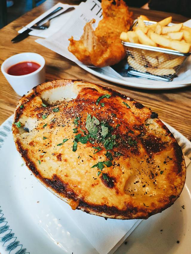 「鱼派」是推荐最多的菜,值得一尝~最下面是超多超丰富的各种鱼肉碎,上层是土豆泥,再上面是芝士,层次丰富,而且量超级大~味道确实略淡,建议撒上胡椒粉和盐再吃~