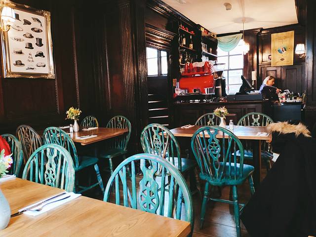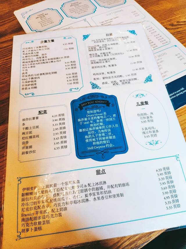 看得出来是有历史的老房子,就像菜单上介绍的那样,是温莎最古老的餐厅之一,建于1645年~装潢很有格调,一楼有个大壁炉,走在地板上会嘎吱嘎吱响~