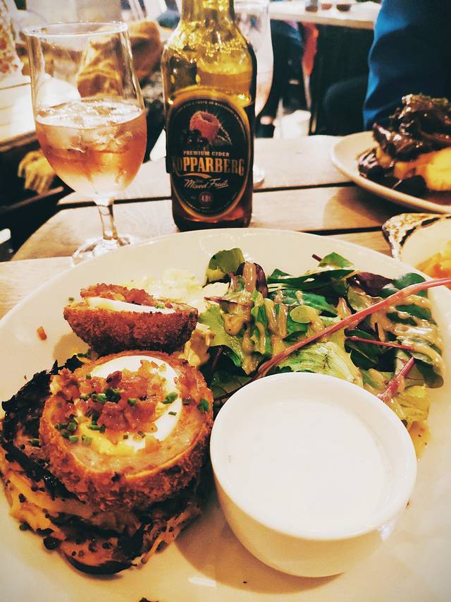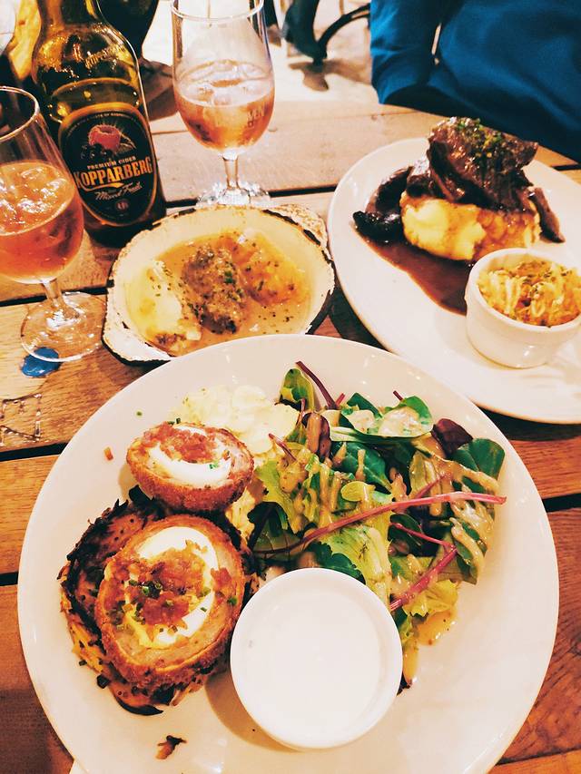 这道菜只有9镑,但是相当丰富~有两种蔬菜沙拉,一个猪肉丸(外皮裹面包碎炸过,里面还有一颗鸡蛋),还有一个土豆丝饼,丰富而美味~