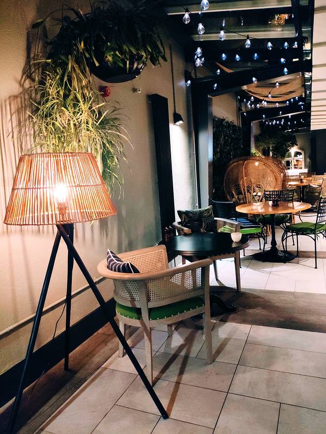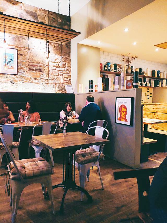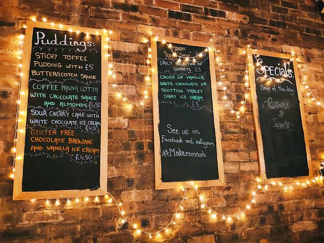 整理心情,去吃顿“情人节大餐”来治愈一下~慕名而来的一家店,为了尝尝特色土豆泥和苏格兰“国菜”Haggis~地点就在皇家英里附近,门面颜色明快,很显眼~五点多到,店里已经坐了一半人~店内不大,但是装潢得温馨舒适,还透着点儿浪漫,算是非常有仪式感的一餐~