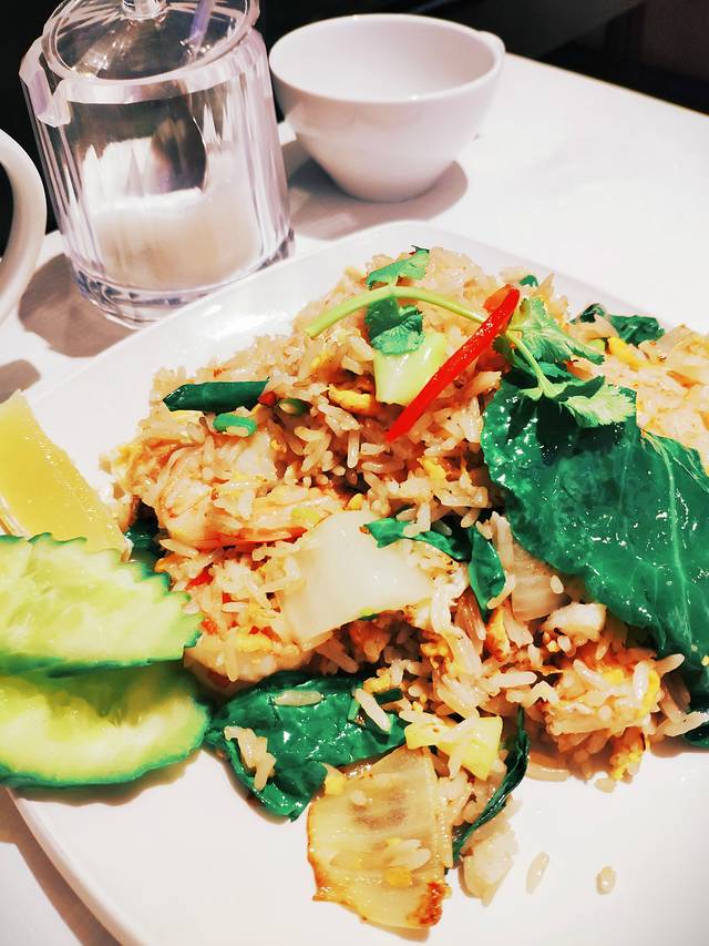 「蛋炒饭」不是常规的蛋炒饭,米饭混着碎煎蛋和菜叶,可以选鸡肉猪肉牛肉和虾~选了虾,虾蛮多的,唯一比较大的菜量~