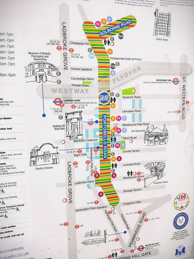 诺丁山离市区不近,但地铁可达。一下地铁仿佛来到了另一个世界,说不上哪里不同,但就是觉得跟伦敦的气质不一样。后来查了下,原来这是一个世界各地居民混居的区域,所以虽地处伦敦,却充满着浓郁的异国风情。