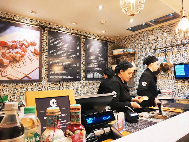 果然购物不是我们的菜,逛了一大圈,只买了一个潘朵拉戒指,连退税的金额都没到……于是早早坐火车回到牛津,再转一班车回伦敦~回伦敦之前,拔草了“creperie angelie”的可丽饼~这家可丽饼人气很高,晚上七点多还在排队~老远就闻到香味,5星给热情友善的服务~