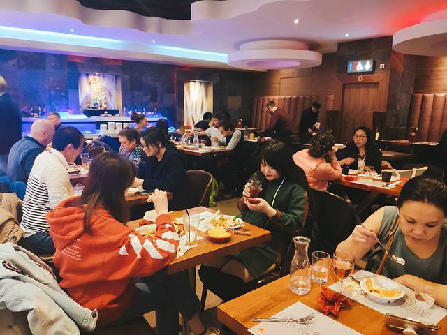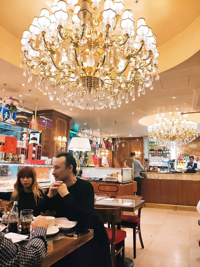 哈罗德百货附近的餐厅全都人均价格不菲,这家人均近两百的餐厅反倒成了平民价~就在哈罗德马路对面的一个转角,门面非常显眼,装潢非常华丽~有好多诱人的小蛋糕,当然正餐也十分丰富,多为意大利菜~
