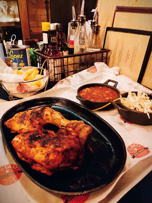 「BBQ烤鸡」又点了一份BBQ烤鸡,半只鸡切成两大块儿,配上焗豆和蔬菜沙拉~其中有一块儿肉有点柴,另一块儿肉质超好~味道非常棒,属于越吃越好吃那种~