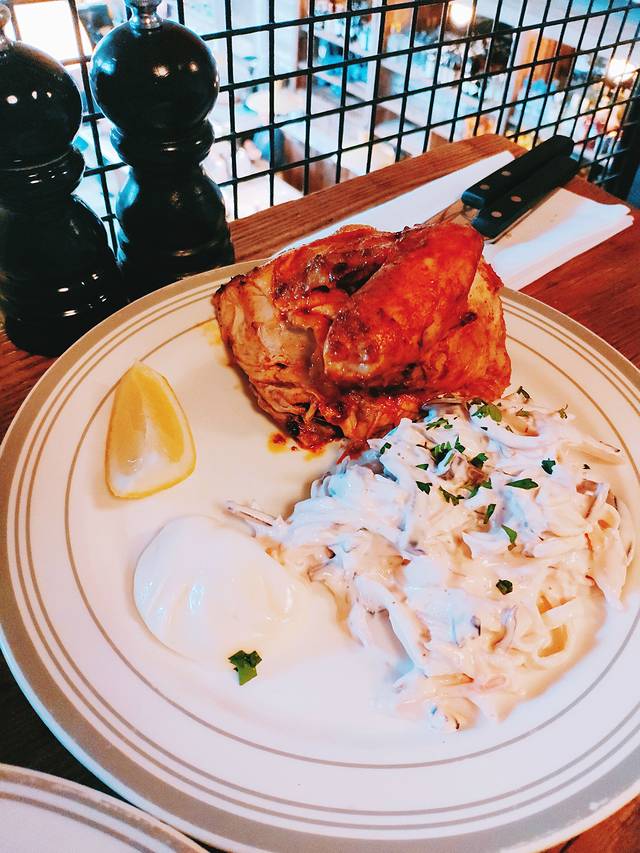 「烤鸡」点了四分之一烤鸡,配卷心菜沙拉~鸡肉味道不错,虽然有“白肉”但口感丝毫不柴~虽然只有四分之一,但量一点也不小~