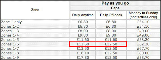 5、大名鼎鼎的牡蛎卡还是非常实用的~要知道在伦敦坐个地铁都肉疼,而使用牡蛎卡,乘坐地铁可以享受优惠,每天都有封顶价格(如图2)~而且充钱和退卡都非常方便,地铁站的机器上便可以完成~