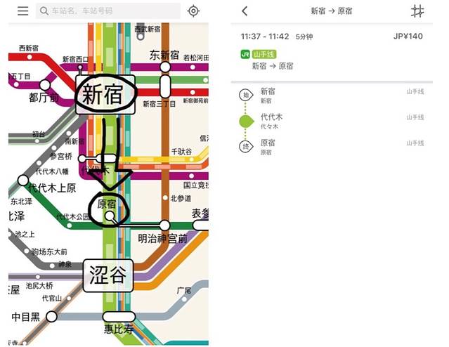 乘坐地铁到达原宿站!
