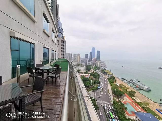 在这里菜大叔给大家安利一个私藏好地方——厦门瑞颐大酒店26楼的行政酒廊。酒店行政酒廊有一个露台,可以看到演武大桥和双子塔,这里可是最佳的拍照位置,演武大桥延伸出海里,拐了一个弯,这也许就是厦门最美的拐角。