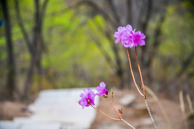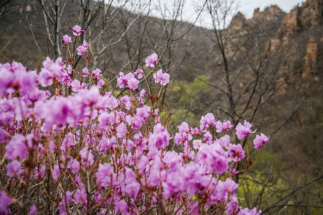 杜鹃花,也称映山红、金达莱,当地人也称为达子香。迎着春风开放的杜鹃花,是大黑山春天里最为迷人的那一抹亮色。
