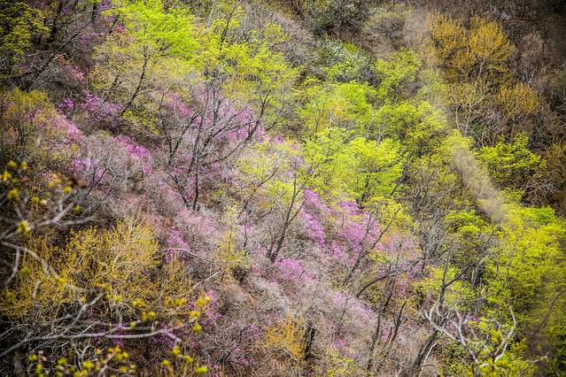 漫步在大黑山,身旁就是盛放的杜鹃,虽然远处的山还没有完全被绿色覆盖,虽然春风中还有着阵阵的凉意,但也感受到那份春的气息就在离你不远的地方,仿佛已经可以听到春姑娘的脚步,离你越来越近了。心中的那份惬意与期待也是十分幸福。