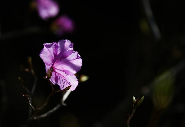 杜鹃花,颜色或粉或紫。娇嫩的花瓣,极薄,透过阳光,可以清楚地看到花叶上的清晰的脉络。这仿佛是看到了它的血管,它备注中流淌着的倔强。