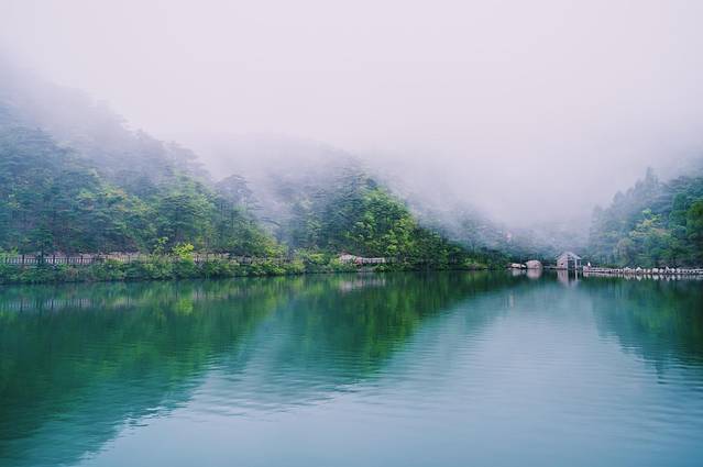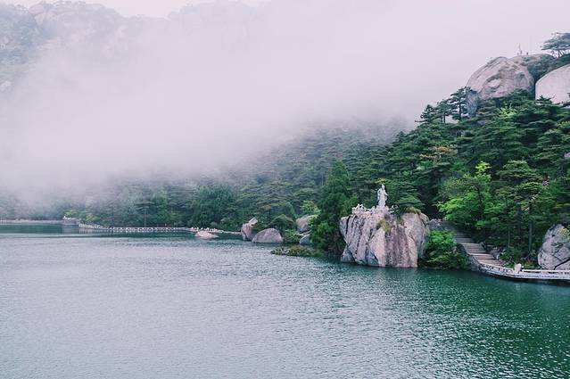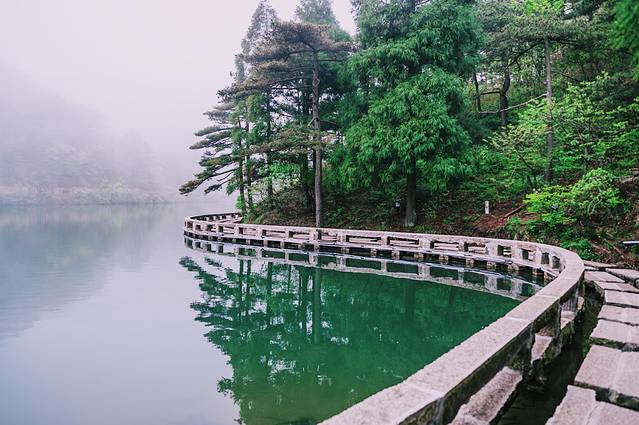炼丹湖的面积在 安徽 虽然不是最大的,但它却是 安徽 海拔最高的湖泊。位于1000多的海拔之上,就如同一面明镜仰卧于 天柱山 之上。松树颜色染绿湖水,像极了睡在摇篮里身着绿裙的俊俏娃娃。炼丹湖的湖水,碧绿如玉,水质清澈,水面平静,偶有微风徐徐,泛起丝丝涟漪,随着气象的变化而变化。有时烟云袅袅,恍如仙境;有时湖平如镜,蓝天群峰相映成趣。