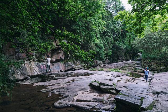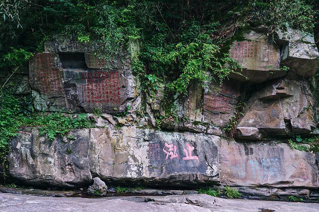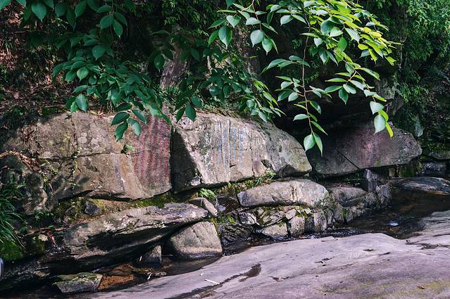 从刚进入门开始,就所处可见摩崖石刻,真不愧是一座天然的艺术博物馆和史料档案馆。仅有500米的山谷溪流之中,就保存着自唐代以来1200余年间的摩崖石刻300多幅,宋朝时期的摩崖石刻有100多幅。