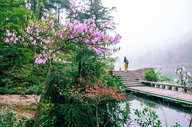 环走炼丹湖一圈大概需要40分钟,虽然还没有机会亲眼见到过 天山 天池与 长白山 天池,但我想论模样,炼丹湖应该比她们秀气一些。炼丹湖湖畔的杜鹃已经悄悄的开放,虽还没有完全盛开,但似乎与这样的仙境更加般配,都如同俏皮中带点羞涩的仙女。