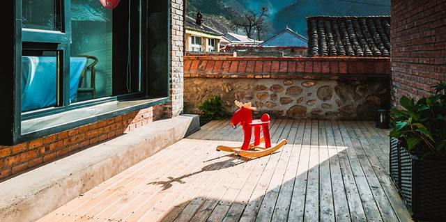 小院的客厅摆着一些老物件,听管家大姐介绍这都是从附近村民那搜罗到的,有《还珠格格》里见过的萨满鼓、马头琴、我们小时候玩过的嘎啦哈,孩子穿着阿哥服拿着萨满鼓一直开心的院子里敲,感觉自己是个灵魂鼓手。