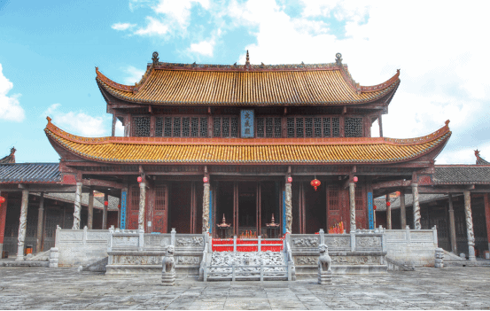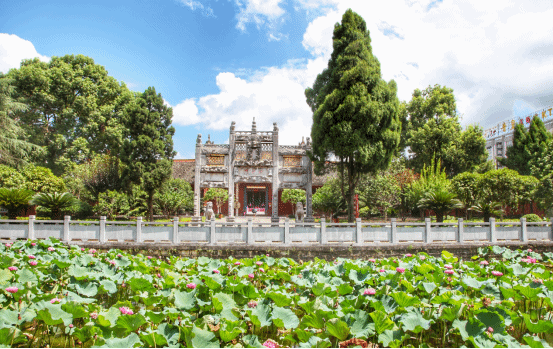 宁远古城西廓有一群巍峨的宫殿式建筑,红墙黄瓦,金碧辉煌,十分显目,它就是名闻遐迩的全国重点文物保护单位、九疑山风景名胜区重要人文景观——宁远文庙。宁远文庙,原建在距宁远县的城东11公里的泠道县故城,北宋乾德三年(965年),县城易名迁址,随县城迁建于今地,又名学宫,是祀我国古代思想家、教育家孔子的庙堂,又是古代社会官办的学堂,它是庙学合一的教育机构,是传播儒文化的神圣殿堂。