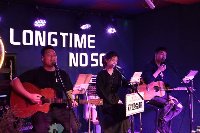 驻唱乐队,热热闹闹的唱着歌,酒吧里的霓虹灯、欢笑声,酒不自醉人自醉。
