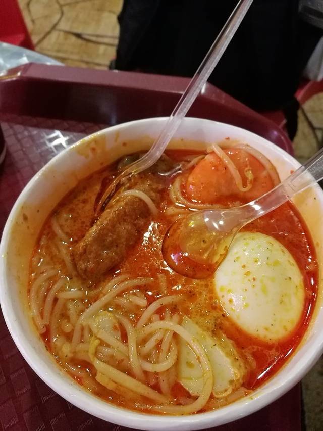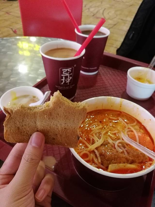 第一顿当然是著名的亚坤。咖椰吐司配咖啡,再加两个溏心蛋是 新加坡 人的标配。在这里隆重推荐咖椰吐司!!!真的很酥脆!连不喜甜食的旭锅都赞不绝口呢!后来返程的时候在市区特意又吃了一顿,还买了些咖椰酱带回家,自己试着烤了面包夹着吃,味道还是差了不少的。旭锅点了叻沙套餐,叻沙是 新加坡 特色的小吃,口感有点像米线,咖喱海鲜汤料十足,有些吃不惯。