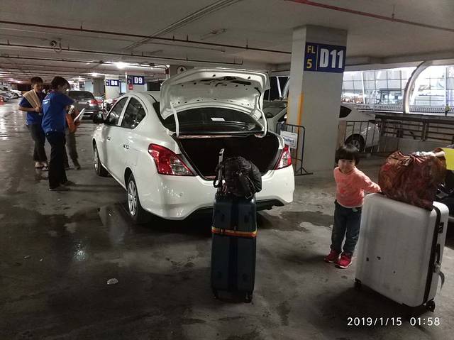 凌晨两点钟,在机场大厅对面50米的 停车楼5层 取到了我们在手机里租租车平台预定的尼桑。---租租车是一个比价平台 ,里面有全世界许多租车公司的报价,提前两天手机里付过钱之后 ,工作人员会带着你去找车。