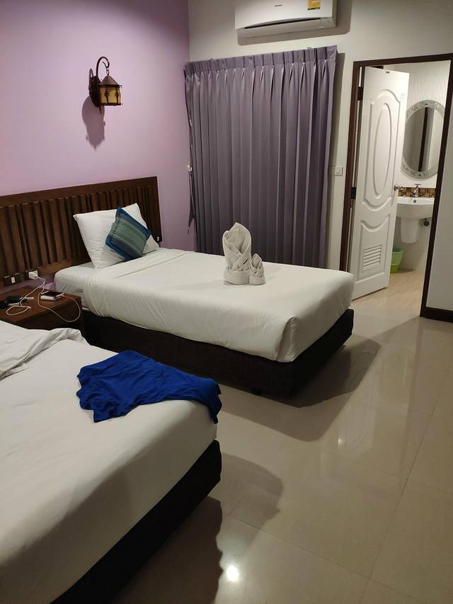 装好行李,开着车来到附近2公里的BS机场快捷酒店,是在携程上预定的,比汉庭舒适一些。刚开上车 ,一拐弯 ,就看到对面有一个摩托车逆行而来,瞬间反应到, 泰国是左行右舵---我开反了啊,在这半夜两点半,脑袋发木了。