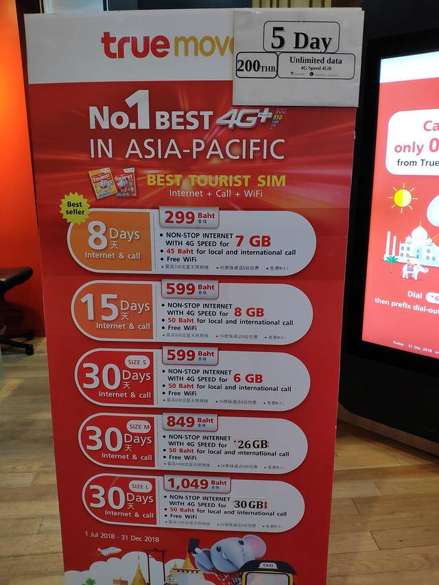 普吉机场 下了飞机取好行李之后,第一件事儿就是在大厅里办一个当地的电话卡---没有网络会死人的! 我买了一个月的流量卡, 人民币150元。这个ais公司的卡,比淘宝上的泰国happy卡要好使,速度快,流量多,信号覆盖更广更强。