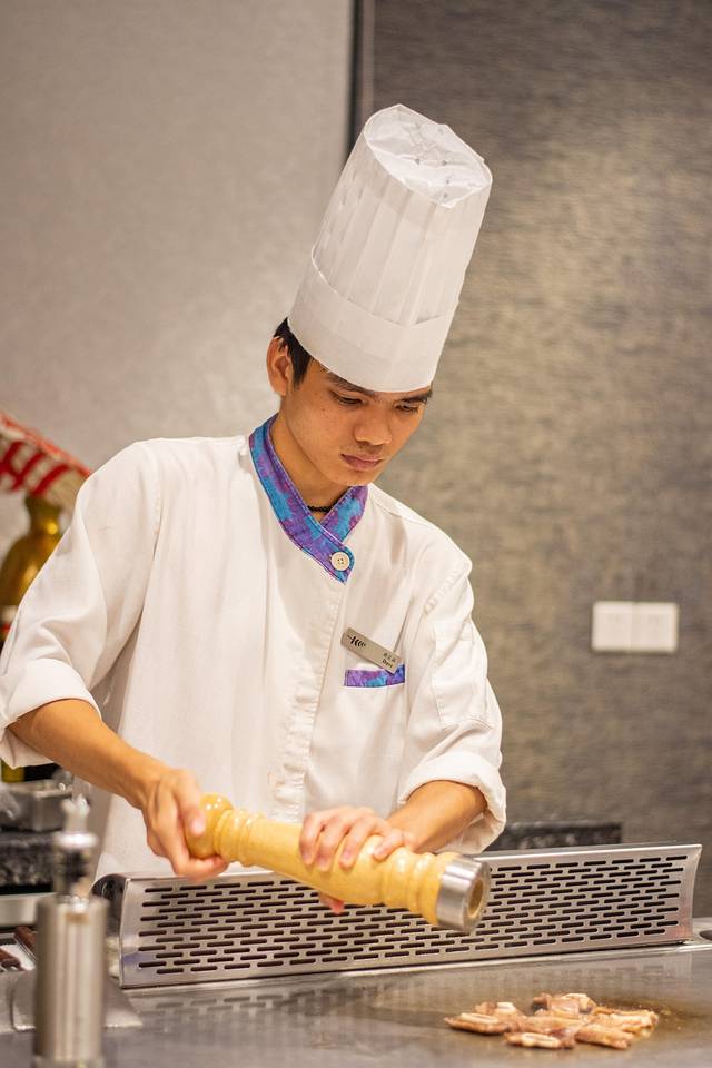 黄昏入夜之后,我们在三亚的第一顿晚餐并没有选择离开酒店外出觅食,而是就在迎宾馆内享受了一餐日式铁板烧。