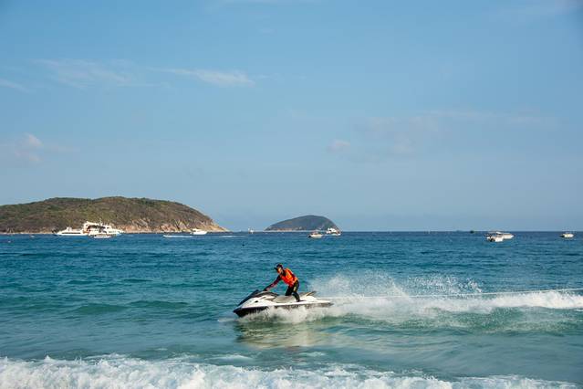 不知道是不是因为淡季的原因,沙滩上并没有太多的游人,海边只是三三两两在拍照又或是在嬉戏的人。不过海面上的那些娱乐项目倒是很热闹,它们总是不缺愿意买单的体验者。而对于我而言,只是想站在细软的沙滩上听听风、看看海,一切麻烦的事情都不想要去理会。