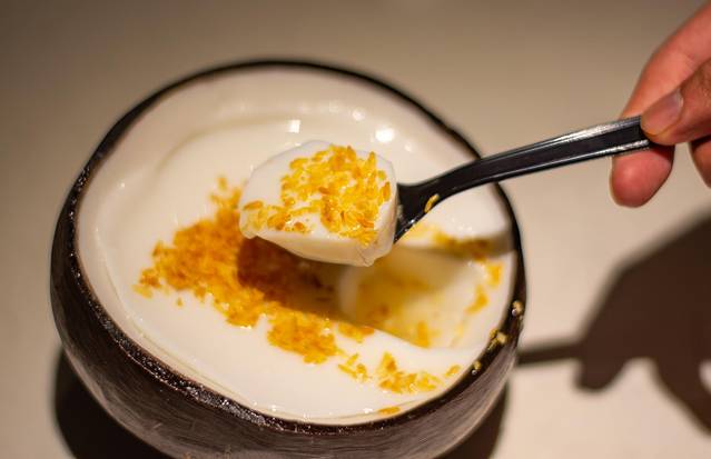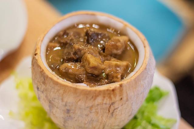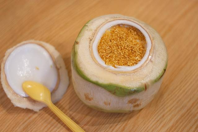都说3个椰子一锅汤,在店内你可以从老师傅砍椰子开始,一路看着鲜甜的椰汁在锅内沸腾。而且,鸡肉也比较推荐选用鲜嫩的子鸡。这样,不需太长时间的炖煮,鸡肉鲜嫩,汤汁清甜,这就是最受当地人欢迎的地道椰子鸡了。