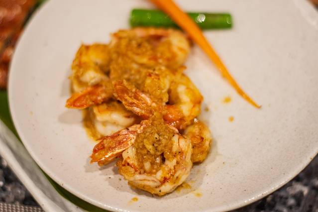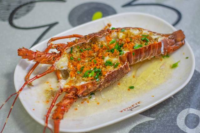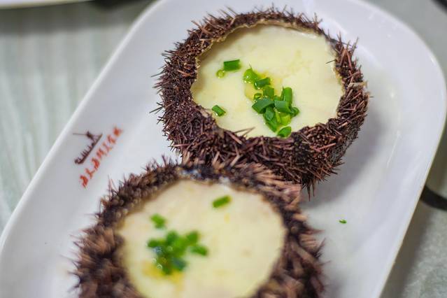 而龙虾和海胆应该是吃起来比较过瘾的了,尤其是一只龙虾两个人分,剥开壳后是紧实的龙虾肉,配上虾肉上的蒜蓉真的是极品。另外再提醒一点,吃海胆蒸蛋的时候一定要沿着海胆壳的壁去好好刮一下,因为那一部分才是最有营养的。