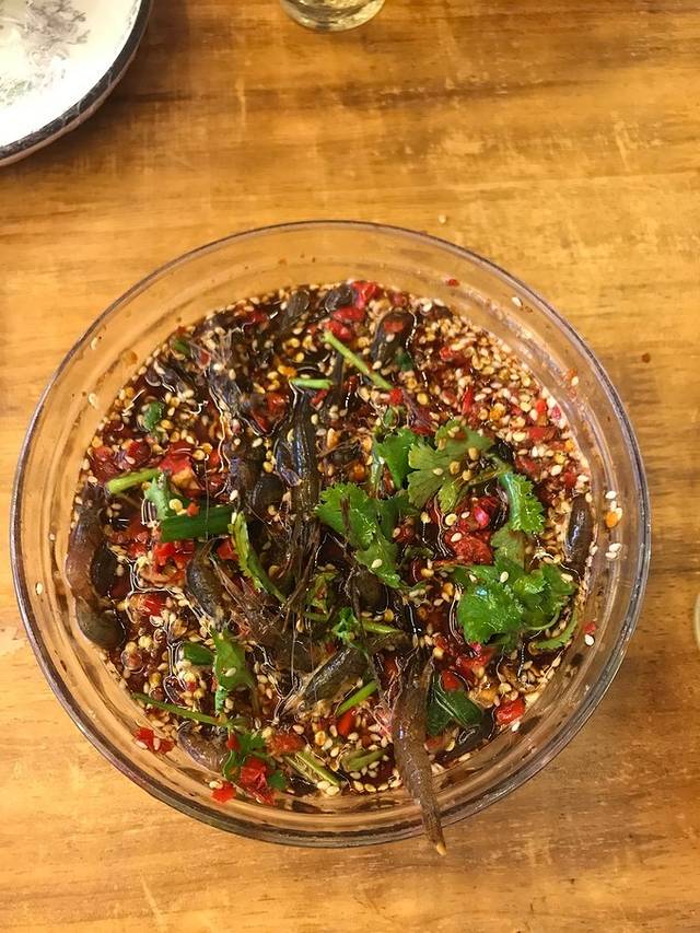 在邛海边上呆了会儿就跟着导航去美食街了,所谓美食街其实就是很多家烧烤店和一些卖当地特色美食的店铺,我个人对烧烤不是很感兴趣,最后决定去吃醉虾。西昌的醉虾看很多人推荐过,这样小小的一碗要69块钱,味道一般吧,也可能是个人口味问题,吃不太习惯醉虾,而且人均还蛮贵的
