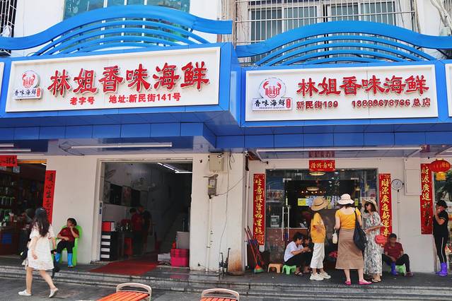 都说靠山吃山靠水吃水,来到三亚 吃海鲜一定是毋庸置疑的。第一市场后面这边汇集了多家海鲜加工店,选好的食材在这里就近进行加工,保证了海鲜的新鲜度。很多人都会比较头痛,这么多家海鲜加工店要如何进行选择。真正有优势的店铺都是靠诚信经营打下口碑,做回头客生意,我们来到“林姐香味海鲜”,店里都坐满了客人。