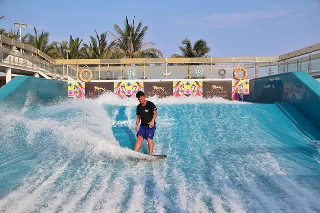 FUN动冲浪通过冲浪模拟器的运转,来实现在陆地上冲浪的新炫玩法,可以尽情体验一把冲浪的快感。也可以到健身房挥汗淋漓,或者做个SPA水疗。