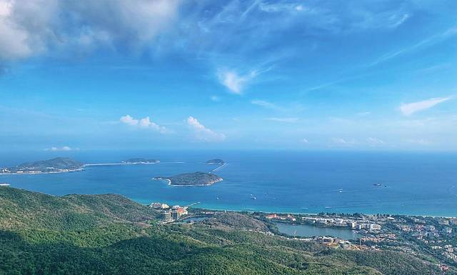 透过机窗望见远处绵长的海岸线,椰影婆娑,海阔天空。随着飞机掠过一座座小山,一片片海湾,终于有点到三亚 的感觉了。